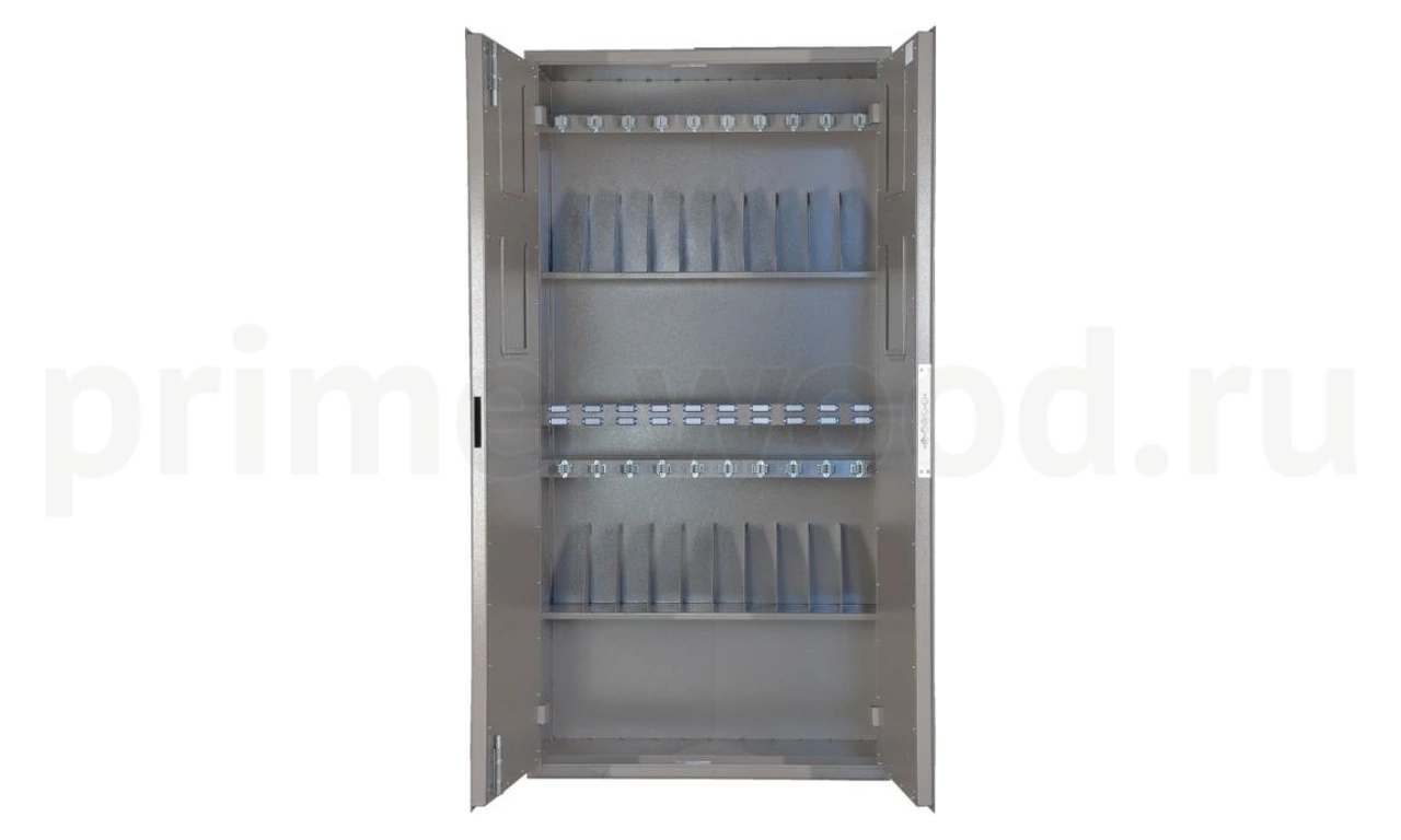 Сейф односекционный, на 20 стволов. Ложементы — металлические держатели с резиновыми роликами.