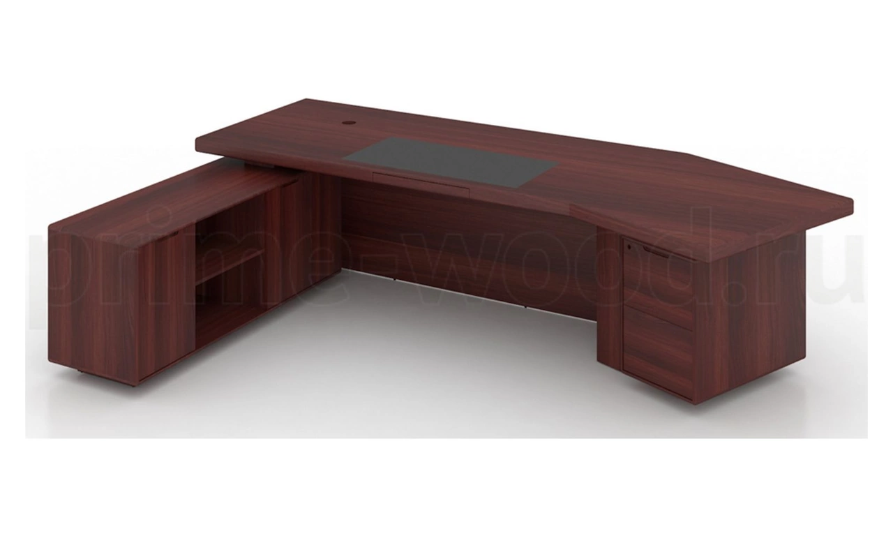 Стол для руководителя L-образной формы с отделкой из шпона и мобильной опорной тумбой