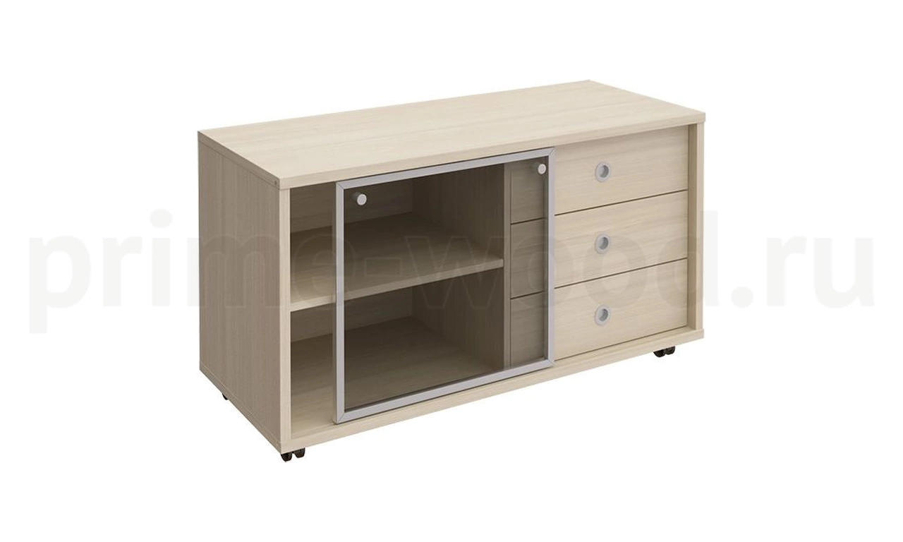 Тумба выкатная 3 ящика без замка + стеклянная дверь-купе в алюминиевой раме универсальная БОРН 121x50x66